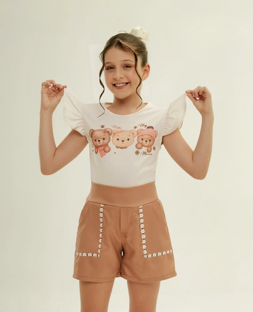 Conjunto Urso Short Florido